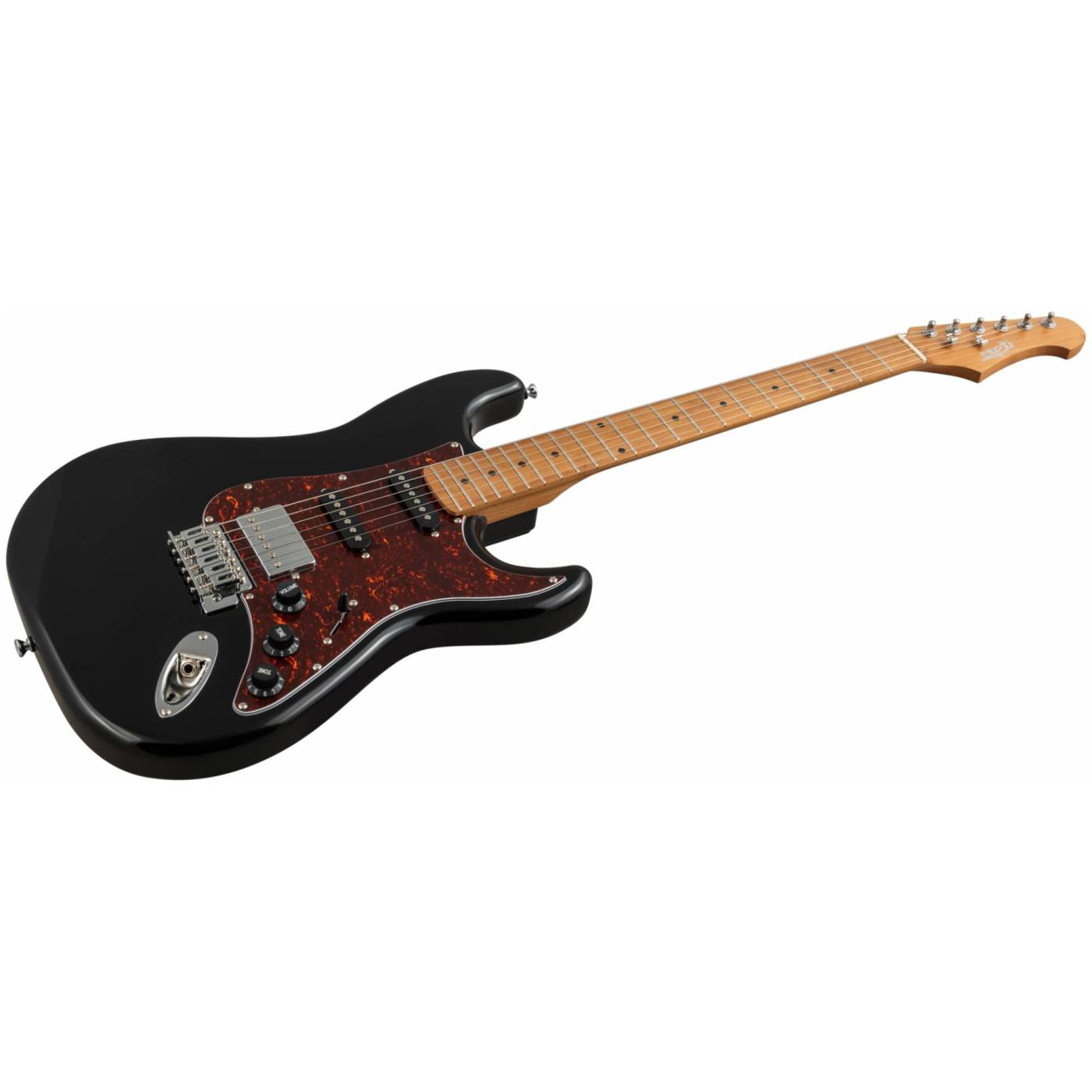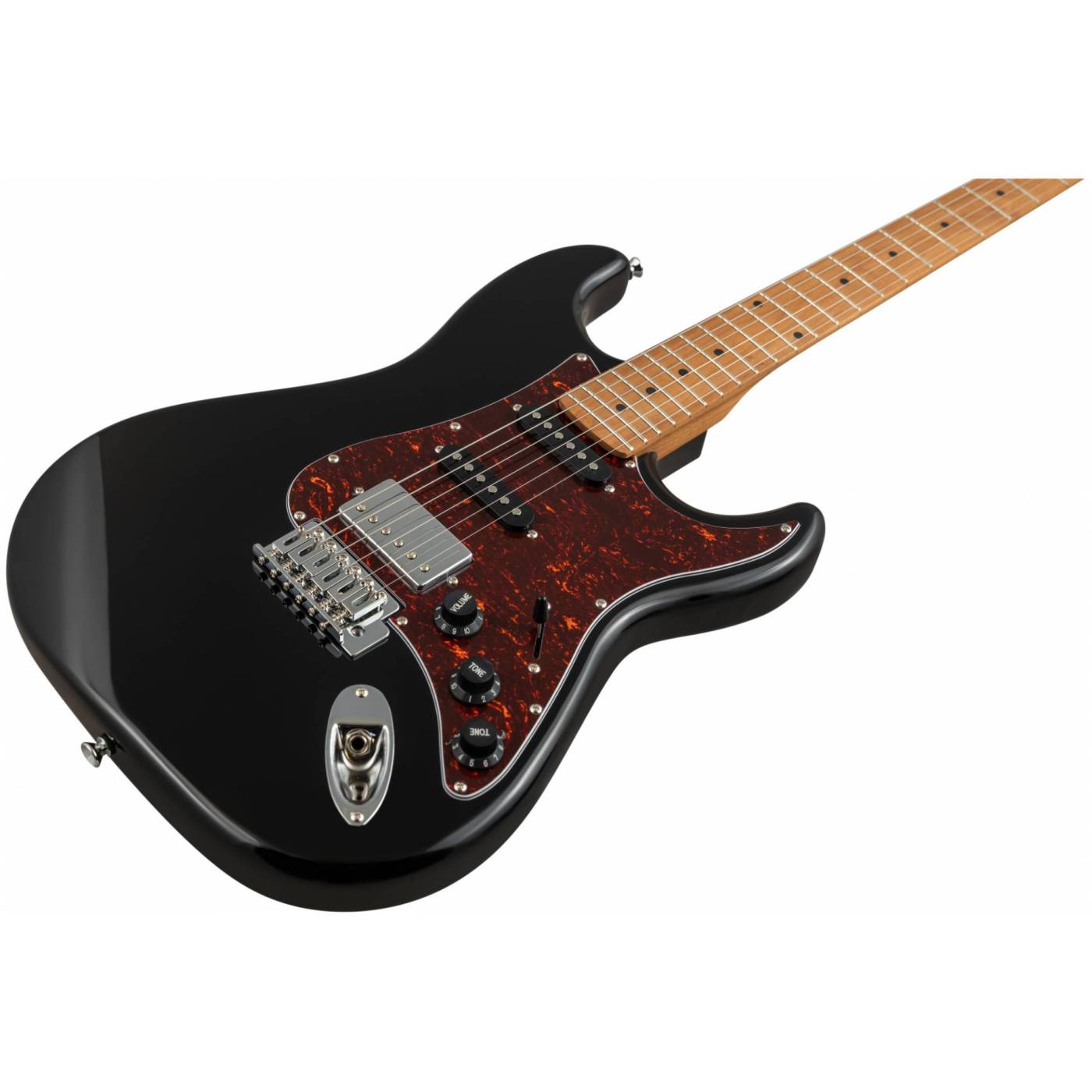 Гриф и накладка на гриф выполнены из печеного клена (roasted maple). При такой обработке поры дерева максимально сжимаются и в процессе использования вода уже не будет выходить, ваша накладка не сожмется и лады не повылазят вне зависимости от влажности и смены температуры. Плюс такое дерево выглядит очень красиво.